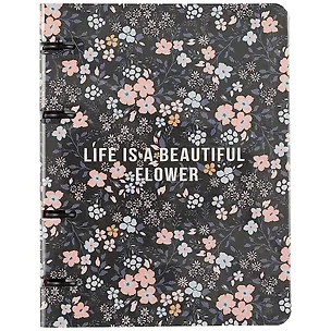 Сама тетрадь имеет шершавую плотную и довольно эстетичную обложку. Она оформлена приятными цветочками. Внутри обложка розовая в черный горошек, что довольно мило.