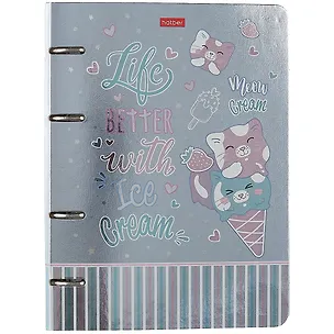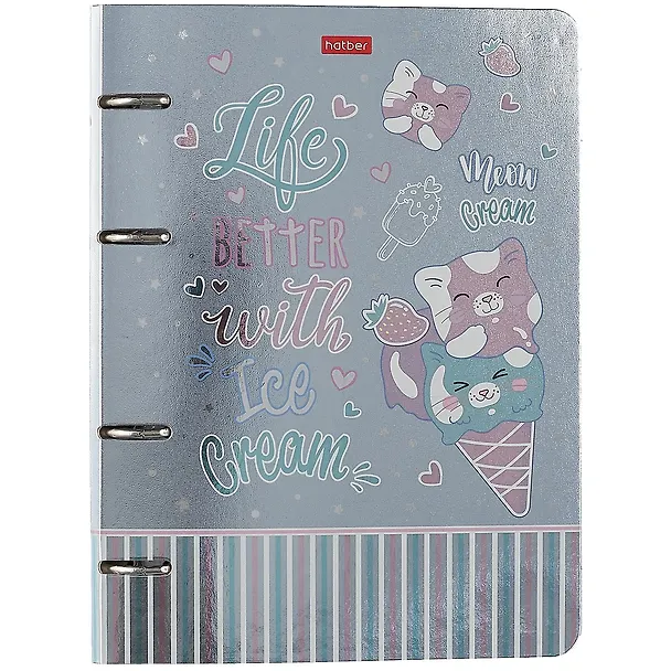 Очень легко раскрываются кольца для смены листов + красивая обложка + очень радует, что в данной тетради поместится не только заданное изначально количество листов, но и раза в 2 больше