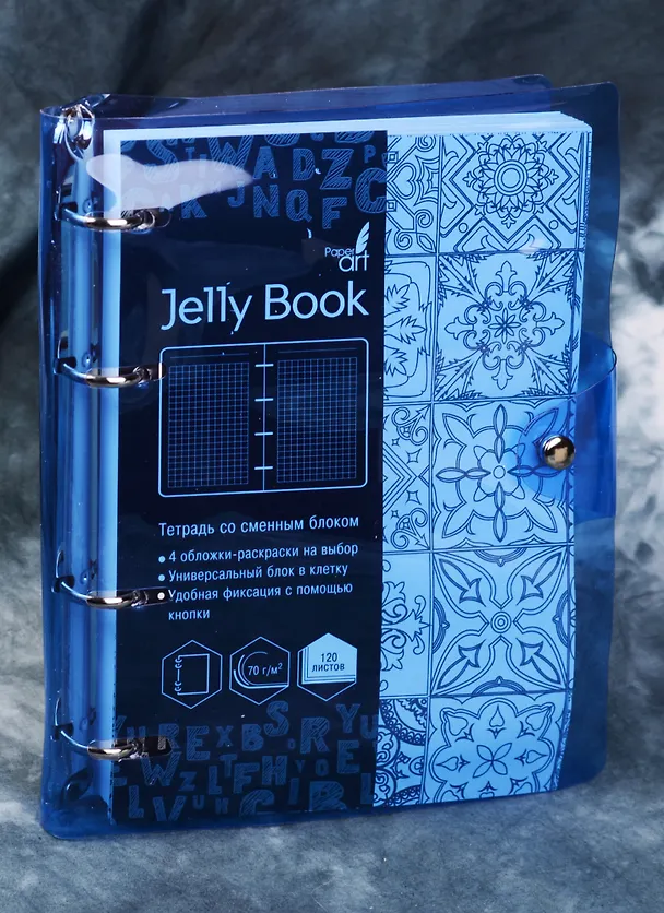 Тетрадь на кольцах в клетку Paper Art, Jelly Book, 120 листов, в ассортименте
