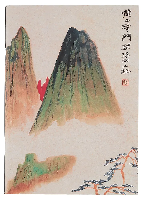 Обложка тетради с горой Хуаньшань от неизвестного китайского живописца. Неброская изумительные очертания горы, скорее всего окутанные внизу в тумане, небольшие причудливо изогнутые ветки дерева. Очень тонкая работа с восхищением красоты окружающей природы от которой веет немного азиатской таинственность, мистичностью, некоторой неторопливостью и умиротворением.