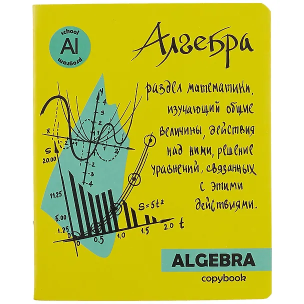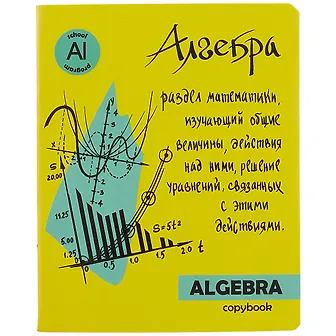 Тетрадь тематическая арт. 50571/5 "ЯРКАЯ УЧЕБА" АЛГЕБРА /48 л., А5+, вн.блок - клетка, белый офсет, мягкий переплёт (2 скобы), облож.- мелованный картон 190 г/м2, выборочный объемный лак, Подкладные листы со справочной информацией/