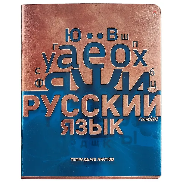 Тетрадь 48л лин. ТЕМА "МЕТАЛЛОГРАФИКА NEW" РУССКИЙ ЯЗЫК офсет, поля, фольгин.обл., тисн., гибр.лак, справ.мат-лы