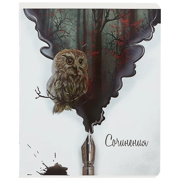 Обложка у тетради очень креативная! Картон плотный, лаковый, картинка переливается, сова на рисунке очень милая))) Внутри, на первой странице, оформлено место для подписи тетради, что очень удобно. Листы белые, нормальной плотности, края закруглённые, поля разлинованы.