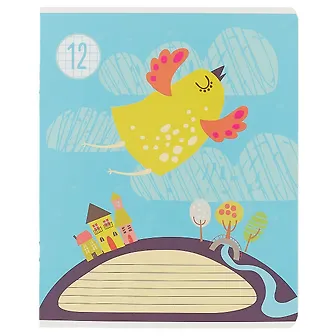 Тетрадь 12 листов на скрепке , формат А5 картонная обложка, блок в клетку с полями , артикул 9156/5-EAC ВД лак "Детские рисунки"
