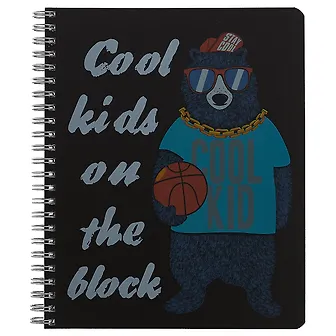Например, без такой, под пластиковой обложкой и на пружинке. Она подойдёт старшим школьникам, студентам и взрослым. На чёрной обложке нарисован крутой медведь, который будет каждый день вызывать у вас улыбку.