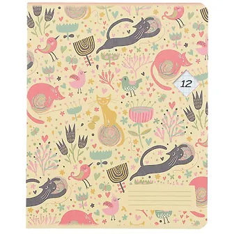 Тетрадь 12 листа клетка "Животные (паттерн)" лен, Academy Style. в ассортименте, без возможности выбора