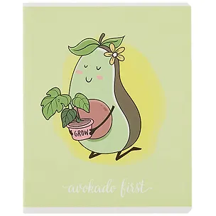 Тетрадь в клетку из очень прикольной серии тетрадей "Жизнь авокадо", сорок восемь листов, тетрадь очень красивая,, особенно мне понравились безумно милые авокадо, также хочу отметить, что у данного товара замечательное качество, листы плотные и белые, также очень хорошо пролинована клетка.