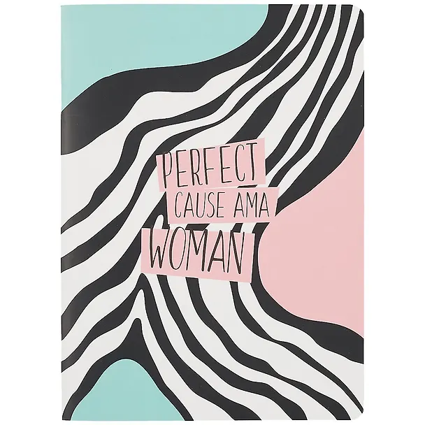 Нравится графическое оформление канцелярской серии с этой надписью (в переводе с разговорного «Совершенна/великолепна/идеальна, потому что я женщина», и внутри надпись "Возражения не принимаются").