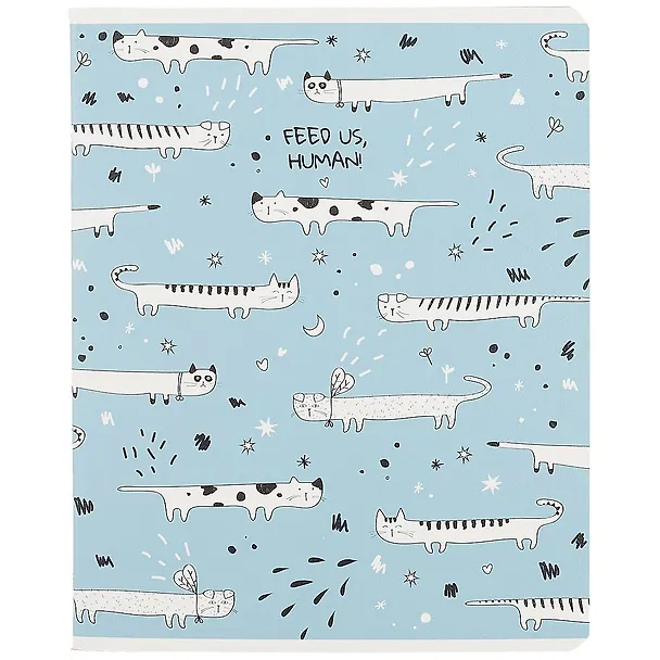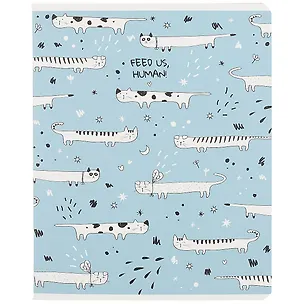 Тетрадь 48л кл. "Feed us", Коты, мел.картон, микротекстур, ламин.