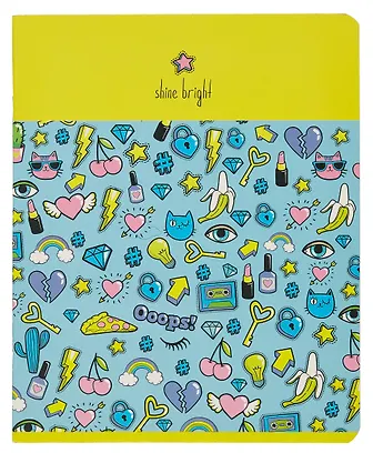 Обложка: картон, печать 4+4, микротекстурирование, ламинация. Скрепка. Высококачественная бумага. Дизайн внутреннего блока "в клетку". Углы тетради скруглены.