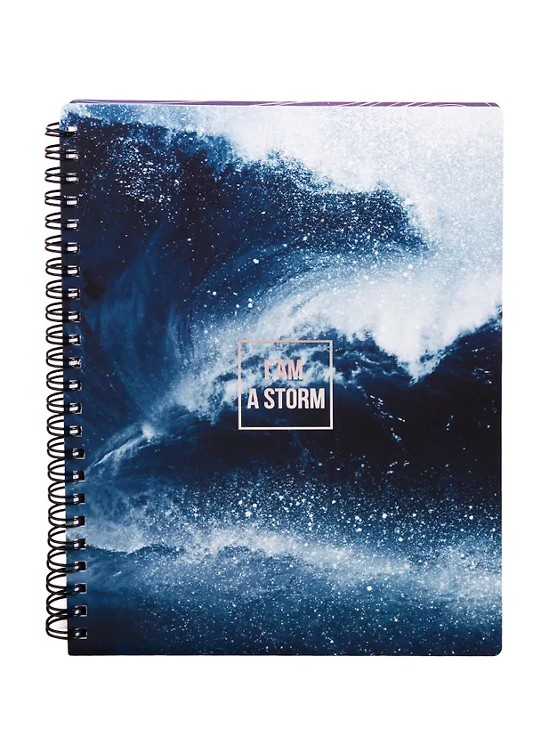 Знаете, что является важным фактором, содействующим изучению иностранного языка? Правильно! Красивая и удобная тетрадь, которая одним своим видом будет мотивировать делать разнообразные грамматические упражнения и не пропускать занятия. Поддавшись благородному порыву освоить испанский язык, я отправилась на сайт, чтобы найти именно такую тетрадь. После долгих поисков я сделала выбор в пользу общей тетради в клетку на спирали, на обложке которой красовались бушующие волны и бунтарская надпись "I am a storm".