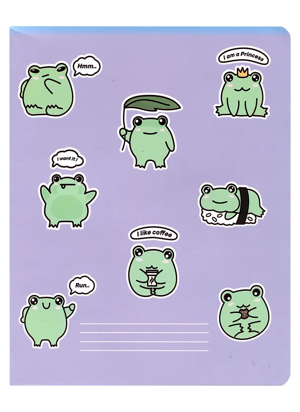 Очень милая и красивая тетрадка с лягушечками! Очень понравилось, что каждая лягушка индивидуальная, в своей позе. Само сочетание цветов на обложке тоже очень нравится, как по мне зелёный с фиолетовым отлично смотрится! Сама тетрадь хорошая, всего 48 листов. Все пропечатано, клетка чёткая. Рекомендую каждому, кто любит лягушечек! Сама тетрадь также отличная по качеству