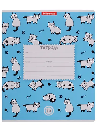 Тетрадь в клетку Erich Krause, Cats, 12 листов, в ассортименте