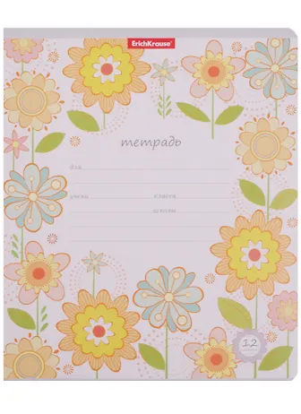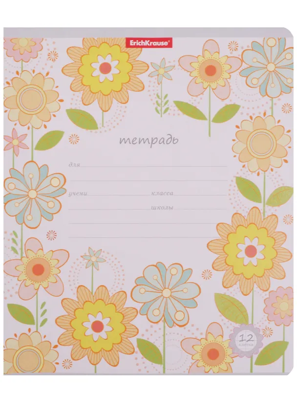 Тетрадь в клетку Erich Krause, Fleur design, 12 листов, в ассортименте