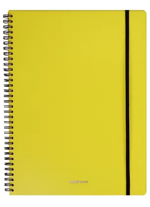 Тетрадь общая формата А4 (210х297 мм). Обложка из высококачественного износостойкого матового пластика с фактурой «песок». Яркие неоновые цвета обложки. В блоке 80 листов в клетку. Бумага офсетная плотностью 60 г/м2. Цвет линовки - синий. Скругленные уголки обложки. Обложка фиксируется прочной эластичной резинкой. Тип скрепления - спираль. Тетради одного цвета упакованы в термоусадочную пленку по 2 штуки. Товар поставляется в нескольких вариантах цвета без возможности выбора.