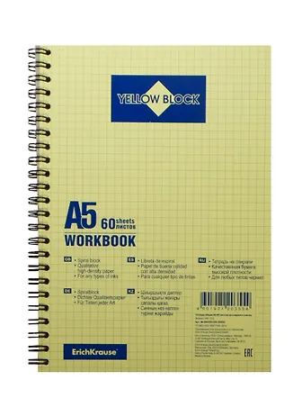 Бизнес-тетрадь формата А5 (148х210 мм). Обложка из высококачественного мелованного картона плотностью 190 г/м2. Жесткая подложка 340 г/м2. В блоке 60 листов в клетку. Бумага желтая тонированная плотностью 65 г/м2. Цвет линовки - синий. Тип скрепления - спираль. Тетради упакованы в термоусадочную пленку по 4 штуки.