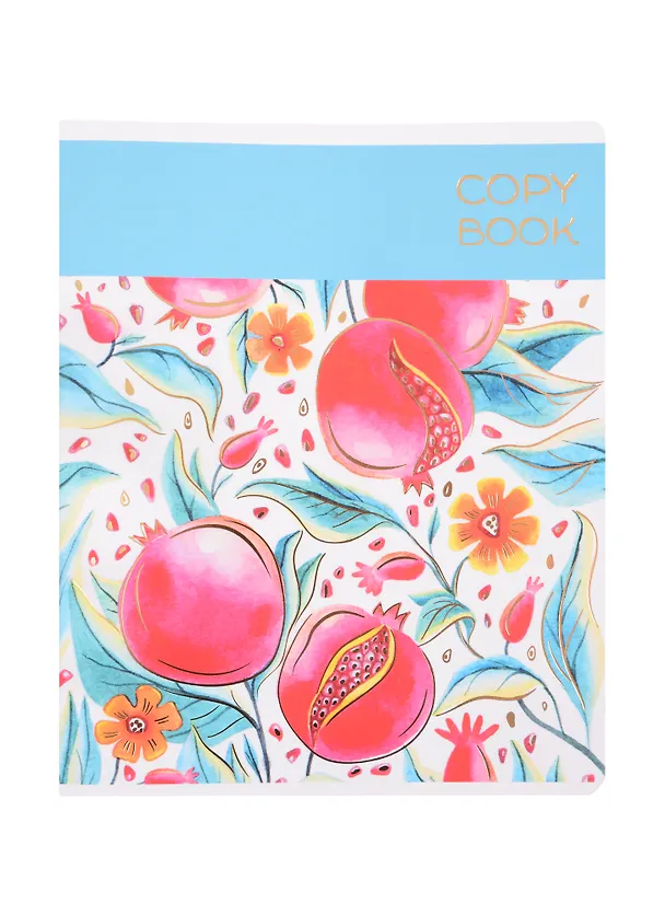 Мне пришла тетрадь, как я и хотела, как на первом фото - с гранатами на голубо-Берри фоне. Она такая знаете, напоминает русскую фольклорную роспись или что-то подобное, сразу народные песни идут на ум. так вот, тетрадь сама очень хорошая, обложка конечно тоже красивая, блестящая, привлекает внимание. Удобно и приятно писать, как и в любой подобной тетради, размер кстати классический, подходит для обложки прозрачной
