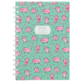 Обложку этой тетради украшают розовые котики на мятном фоне. Посмотрите, какие они милые!