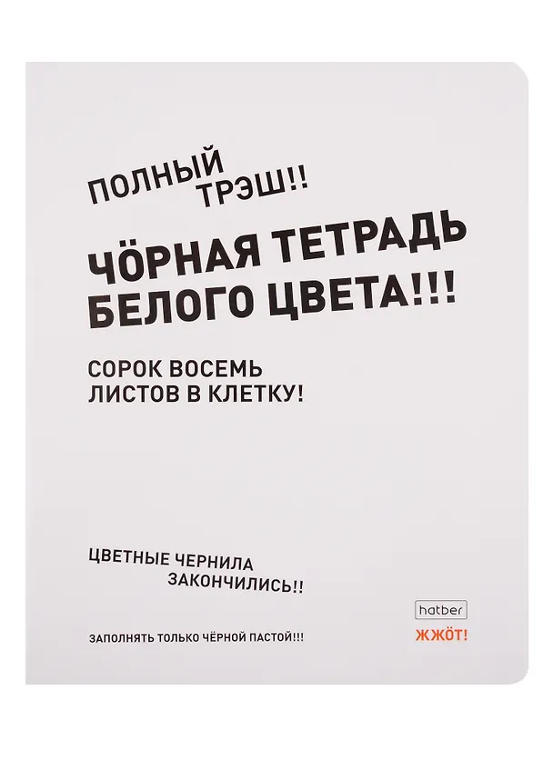 Представлено в этой серии 5 видов данной тетради. Хотелось, чтобы пришла именно та, что на заставке товара. К сожалению, получили другую тетрадь из этой серии. Тем не менее, тетрадь хорошего качества, обложка глянцевая, надпись забавная, яркая обложка, листы тетради плотные, белизна 100%.