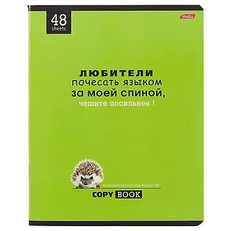 Симпатичная тетрадка, привлекла своей ценой и яркой обложкой с мотивирующими цитатами. Заказала через интернет-магазин, пришла быстро - оранжевая тетрадь с надписью "Если что-то не клеится - брось клей, переходи на гвозди" и милым сурикатом!