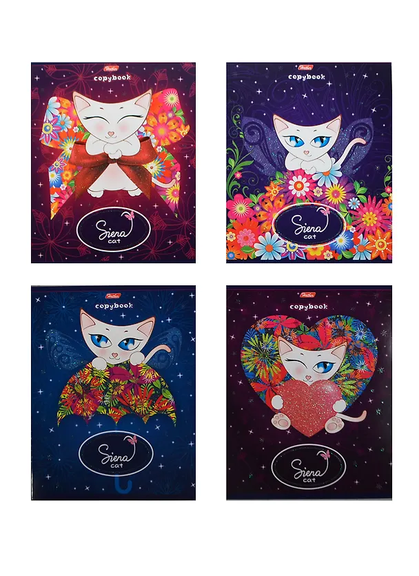 Тетрадь 24 листа кллетка "Siena Cat" офсет, блестки, ассорти, Hatber