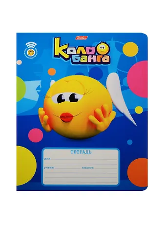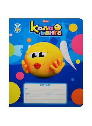Тетрадь 12 листов А5 формата в клетку на скобе. Смайлики -герои популярного мульфильма КОЛОБАНГА сделают радостным обучение в младшей школе. Обложка мелованный картон, блок 60г/м.