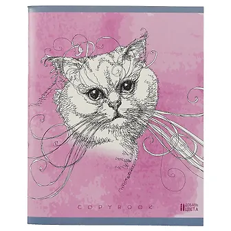 Тетрадь украшают изящные портреты котов, словно нарисованные чёрной ручкой на бумаге пастельного оттенка. Выглядит очень оригинально и реалистично.