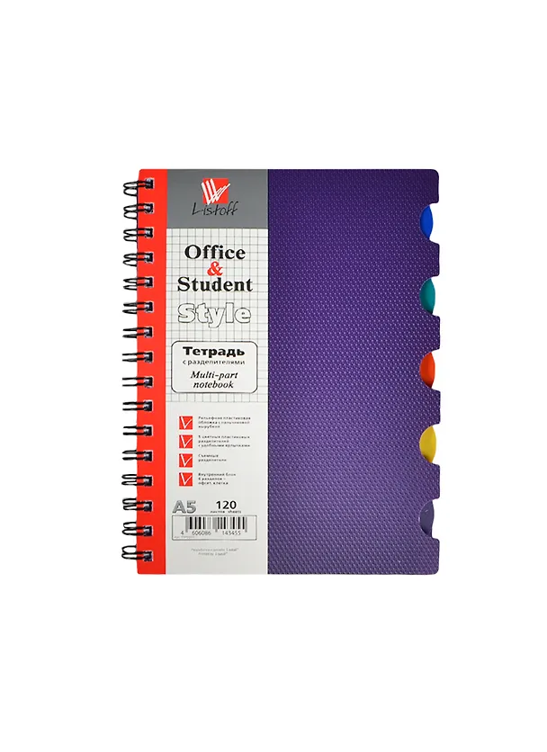Плотная обложка, яркие и удобные разделители, приятные цвета, возможность использовать одну тетрадь для нескольких предметов сразу