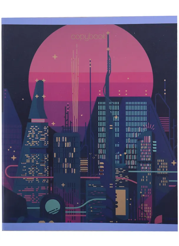 Плотная обложка, отчасти глянцевая. Интересный дизайн, приятные цвета, окошки в домах выполненные серебряным цветом, что очень классно смотрится. Листы белые с чёткой аккуратной разлиновкой, и единственное, что странно, в одной половине тетради поля большие, в другой половине маленькие. В принципе очень неплохая тетрадь, всем довольна.