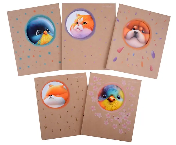 Тетради отличные! Красивая крафтовая обложка с окошком в котором ярким пятном выделяется милый зверек. Обложка приятная на ощупь, внутри белые страницы в клетку. Тетради качественные, количество страниц идеальное и пользоваться ими очень приятно.