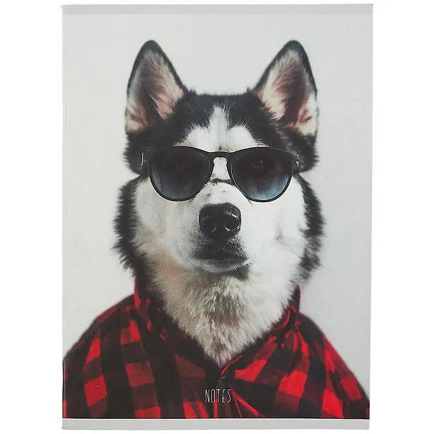 Удобный формат А4, белая бумага, клетка, весёлый пёс на обложке