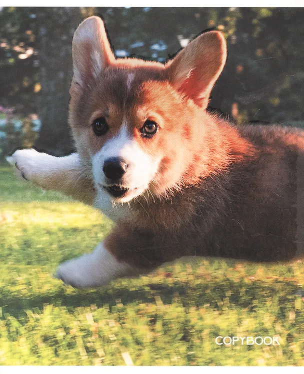 Красивая тетрадь, щенок на обложке очень милый, сам щенок глянцевый а фон матовый. Картон обложки и сами листы не белоснежные, но достаточно белые. Плотность бумаги достаточная. Поля есть. Клетка голубая, поля красные. Производство Россия. Изготовитель ООО "Канц-эксмо". Небольшой дефект на внутренней стороне обложки редкие мелкие точечные вкрапления дорожкой примерно 5 см., но не кретично. Оптимальное соотношение цена-качество. Отличный бюджетный вариант хорошего качества.