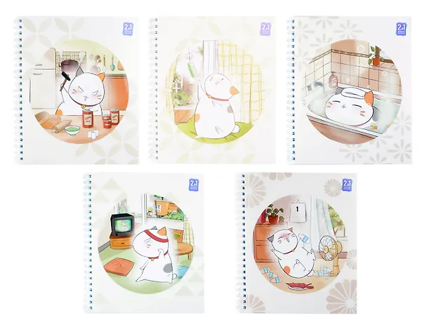Тетрадь 96л кл. "Японский котик (Эксклюзив)" гребень, мел.картон, выб.лак. 2-я обложка-разделитель: мел.картон, ассорти