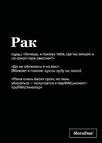 Тетрадь с интересным и креативным дизайном. На обложке - какой-либо из знаков зодиака (просто надпись, не изображение) и его описание в юмористической форме. Внутри есть словарь школьника (определения к разным школьным предметам, тоже с юмором) и словарь астролога (описания ко всем знакам зодиака). Обложка приятная на ощупь. В целом прикольная тетрадка, можно брать и себе и на подарки.