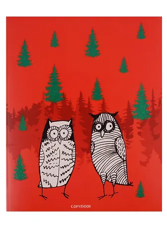 Тетради А5 48л. Скрепка. Клетка. Обл.: мел. картон, выб. лак, блестки "Изумруд". Бум. оф.60 г/м2.;Банда сов (графика);ТКБ485731
