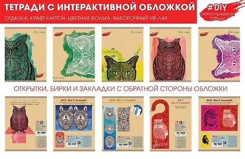 Тетради А5 48л. Скрепка. Клетка. Обл.: крафт картон, тиснение цветн. фольгой, выб. УФ-лак. Интерактив. Бум.оф.60г/м2.Уп./гофр.по10шт.в.пл;DIY Collection. Коты и совы;ТКФЛ485907