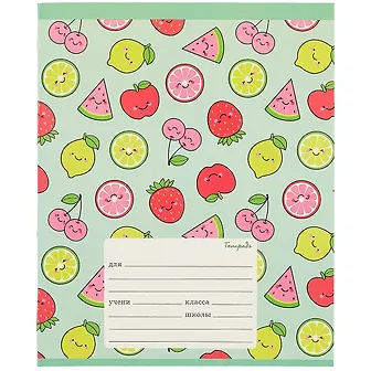 Тетрадь в клетку Unnika, "Фрукты (графика)", 18 листов, в ассортименте