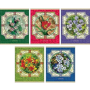 Неплохая тетрадь, плотная матовая обложка. Мне досталась светло-зеленая. Дизайн "витраж с цветами" - приятное разнообразие среди более "детских" обложек с героями мультфильмов, машинами и весёлыми надписями.