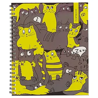 Тетради А5 48л. Гребень. Клетка. Обл.: мел. картон, выб. лак. Бум. оф.60 г/м2. В уп. 5 видов. Уп./гофр.по 8 шт. в терм. пл., Кошачье совещание (графика), ТСЛ485862