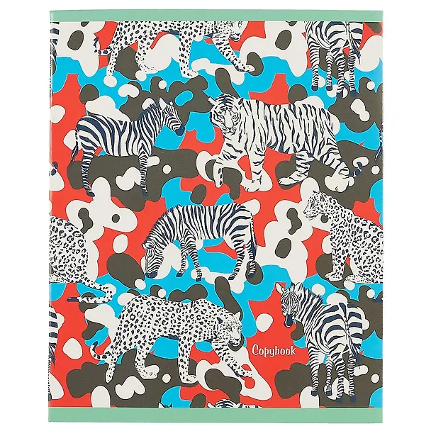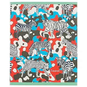 Тетради А5 48л. Скрепка. Клетка. Обл.: мел. картон, выб. лак. Бум. оф.60 г/м2. Поля. В уп. 5 видов. Уп./гофр. по 10 шт. в терм. пл.,Красочные джунгли (графика),ТКЛ485703