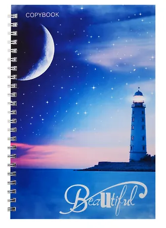 Тетрадь 100л кл. "Пейзаж. Маяк на берегу" 7БЦ, евроспираль, глянц.ламин., Unnika