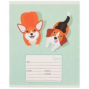 Заказывала в интернет-магазине без выбора цвета, в итоге, досталась жёлтая с двумя симпатичными собачками. Тетрадь очень хорошего качества, плотная обложка, листы белые, гладкие с ярко расчерченной клеткой, поля тоже имеются. По традиции на обложке таблица умножения, иногда выручает.