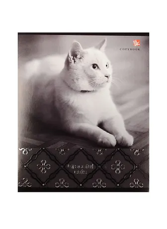 Тетради А5 48л. Скрепка. Клетка. Обл.: выб.лак с черн.пигментом(термоподъем), тисн.фольгой "Серебро". Бум.оф.60г/м2. Роскошные коты 48л. 5 видов