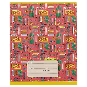 Глядя на эту тетрадь, школьник точно не забудет, что нужно взять с собой в школу. Ведь на ней всё нарисовано! Кисточки, линейки, ручки, карандаши, стёрки – всё это должно быть у прилежного ученика.