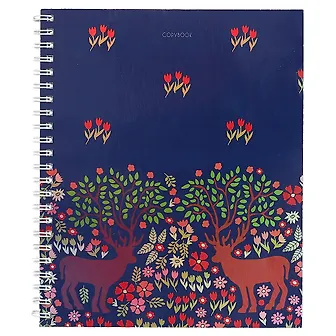 Мне повезло, и я получила тетрадь именно с тем дизайном, который больше всего хотела, с оленями. Тетрадь красивая. Фото не передает всю красоту обложки. Рисунок выполнен с элементами цветной фольги, она отражает свет и создает переливающийся голографический эффект. Передняя обложка тетради глянцевая, задняя - матовая.