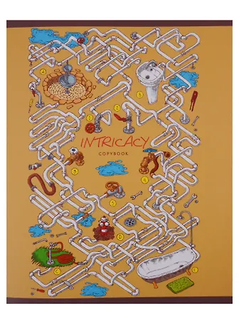 Самое примечательное в этой тетрадке -- плотная обложка с лабиринтом, какие бывают в детских журналах.