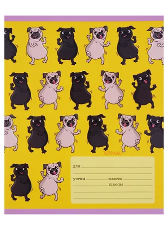 Тетрадь в клетку Unnika, "Весёлые мопсы", 12 листов, в ассортименте