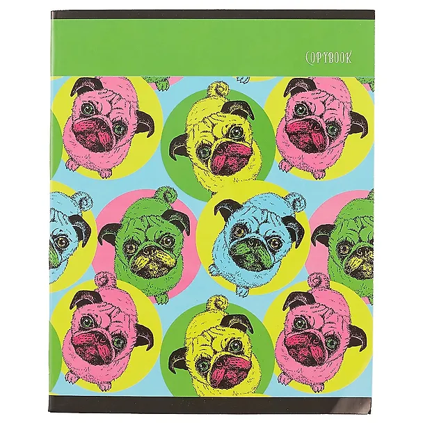 Тетрадь 48л кл. "Забавная компания (графика)" скрепка, мел.картон, выб.лак, офсет 60г/м2, поля, ассорти