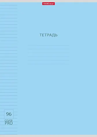 Тетрадь общая ученическая формата А4 (210х297 мм). Двойная обложка: внешняя выполнена из высококачественного износостойкого прозрачного пластика с фактурой «апельсиновая корка», внутренняя — из качественной мелованной бумаги. В блоке 96 листов в линейку. Бумага офсетная плотностью 60 г/м2. Цвет линовки — синий. Скругленные уголки обложки и блока. Тип скрепления — скоба.