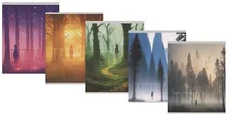 Красивая обложка: при этом на лицевой стороне под определенным углом ветви деревьев красиво бликуют из-за вставок поверх изображения, а сзади просто пропечатанный рисунок.